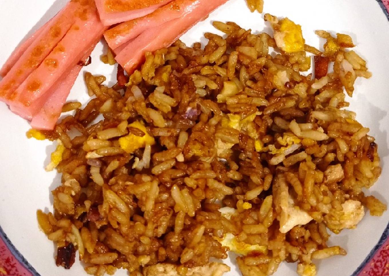 Kebetulan masih ada sosis di kulkas dan nasi sisa kemarin malam. So... enjoy....