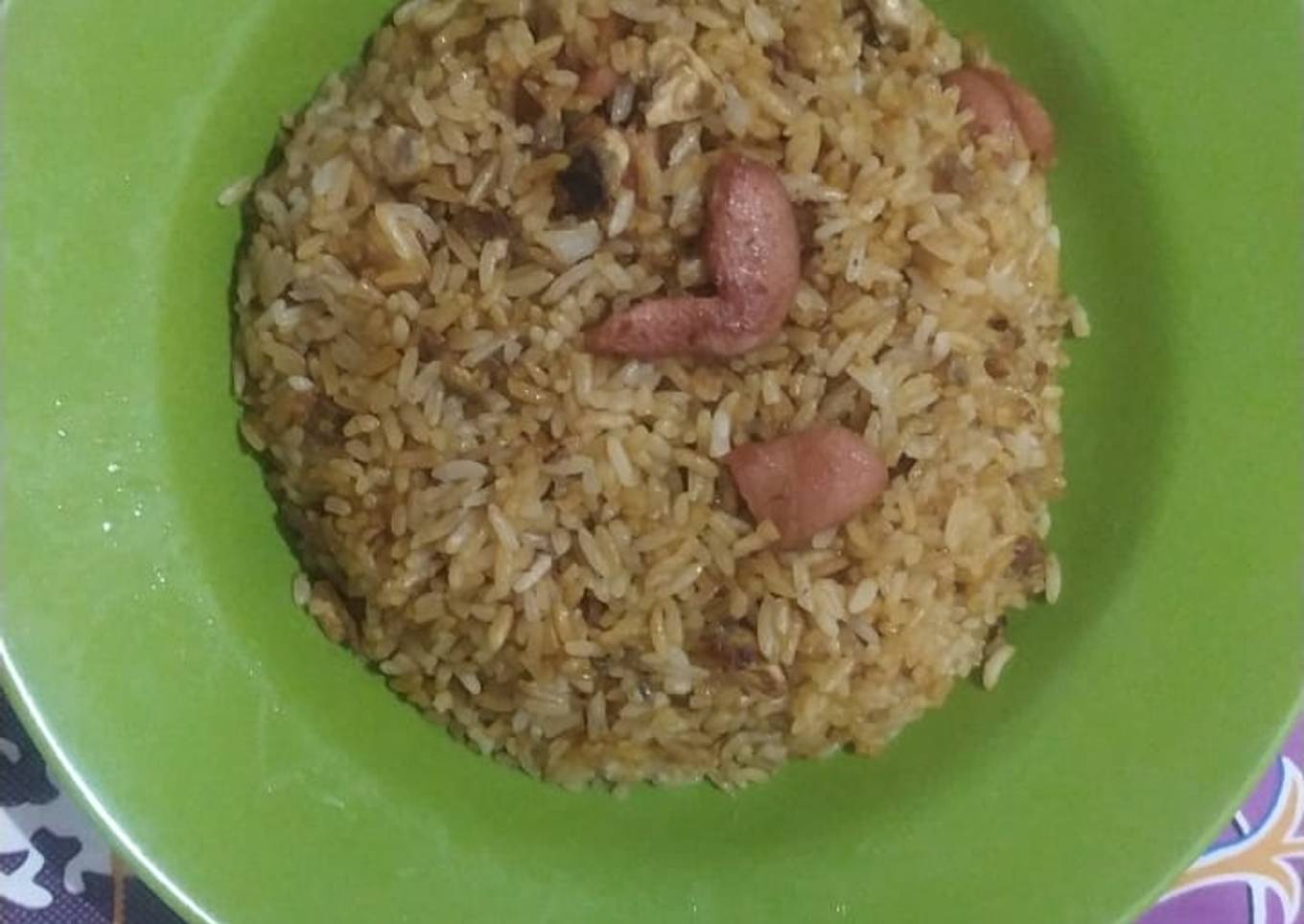 - Masuk kan telur, orak arik kemudian masukkan sosis dan nasi aduk hingga merata dengan bumbu, kemudian masukkan garam dan kaldu secukupnya, aduk raya masukkan kecap hingga warnanya merata cek rasa
