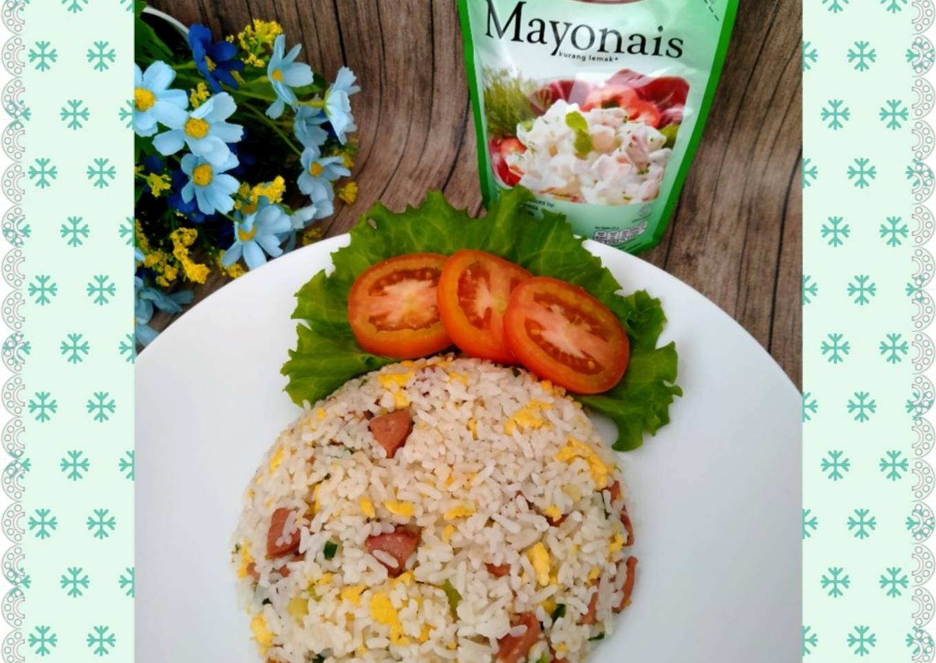3. Capurkan nasi dengan mayonaise, aduk rata. Tumis sosis, masukkan daun bawang, masukkan nasi.\"\"\"\"\"\"